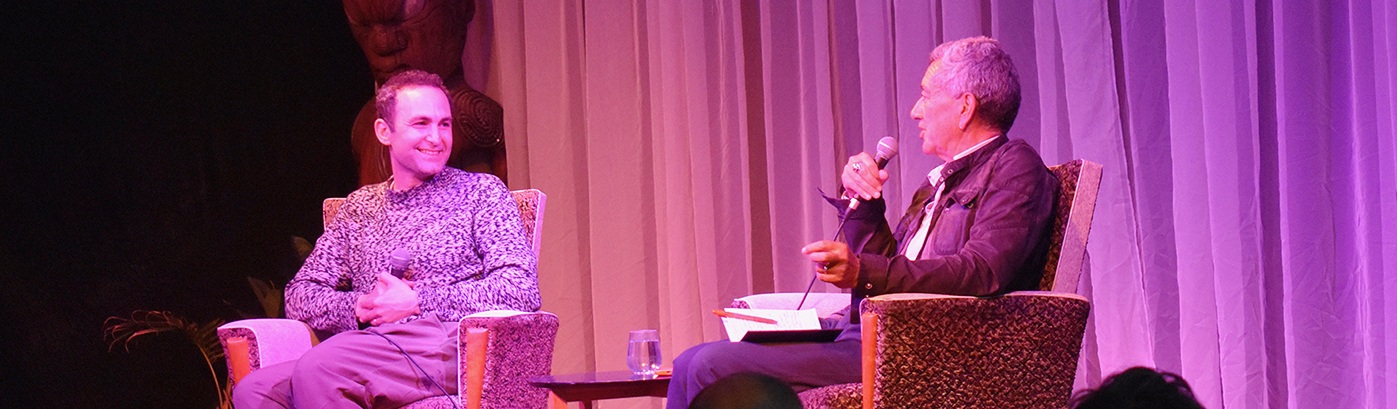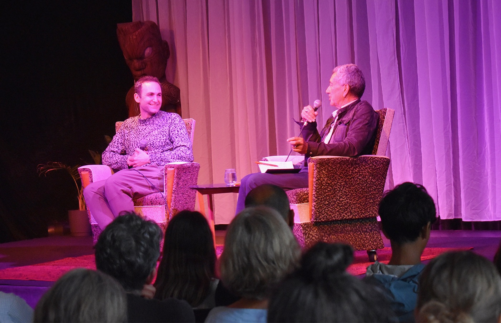 Khalid Abdalla, left, speaks with Tainui Stephens during the Native Minds session. Photo Ōtaki Today