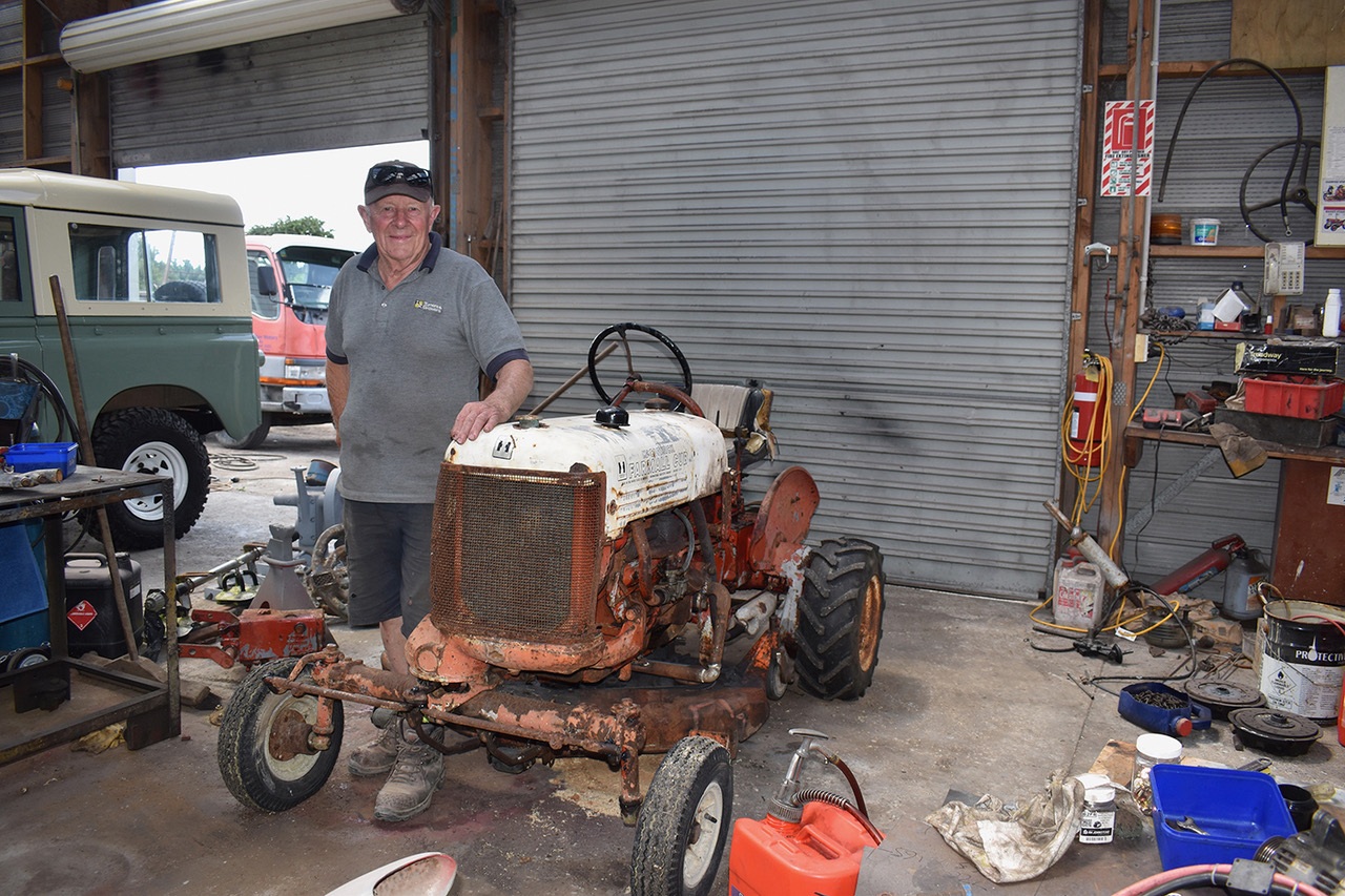 Rod Clifton with one of his current tractor restorations – a rare 1953 Farmall Cub with a belly mower. Rod has more than 400 tractors at Te Horo. Photo Ōtaki Today